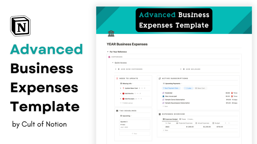 Do you break out in a cold sweat at the thought of tax season? Are you tired of drowning in a sea of receipts and feeling like your business expenses are a bottomless pit? Fear not, because the Advanced Business Expenses Notion Template is here to save the day (and your sanity).